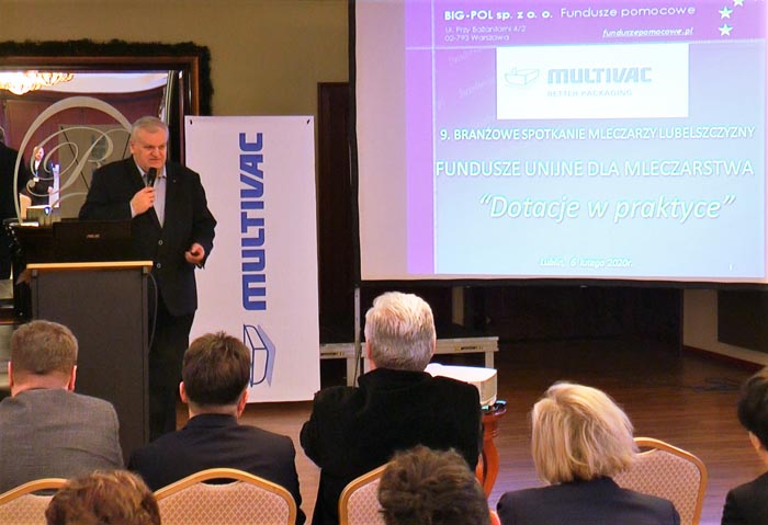 06 lutego 2020, w Lublinie, odbyło się IX Branżowe Spotkanie Inauguracyjne Mleczarzy Lubelszczyzny. Program spotkania obejmował: część pokazową w siedzibie Multivac Polska w Natalinie oraz część seminaryjną, która odbyła się w Centrum Konferencyjno-Wystawienniczym Etiuda w Lublinie.
